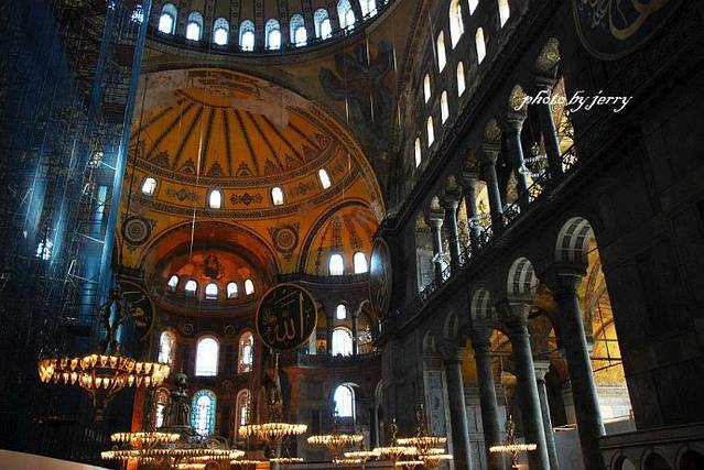 以索菲亚大教堂巨大穹顶为代表的拜占庭建筑中的圆顶结构,后日对伊斯兰建筑产生了巨大影响