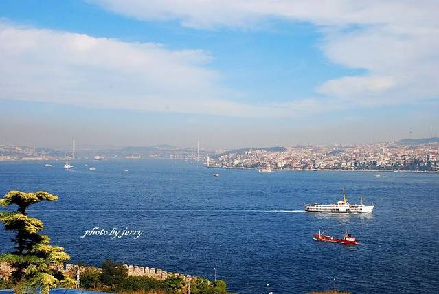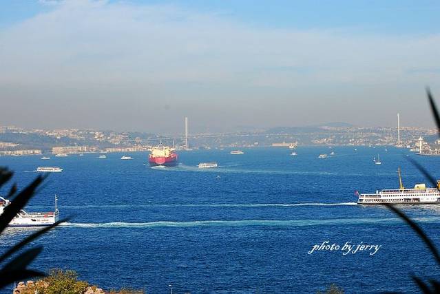 博斯布鲁斯海峡,远处横跨欧亚的大桥