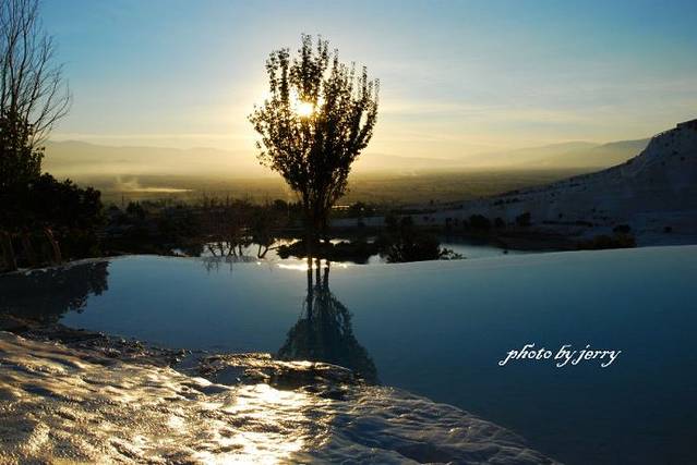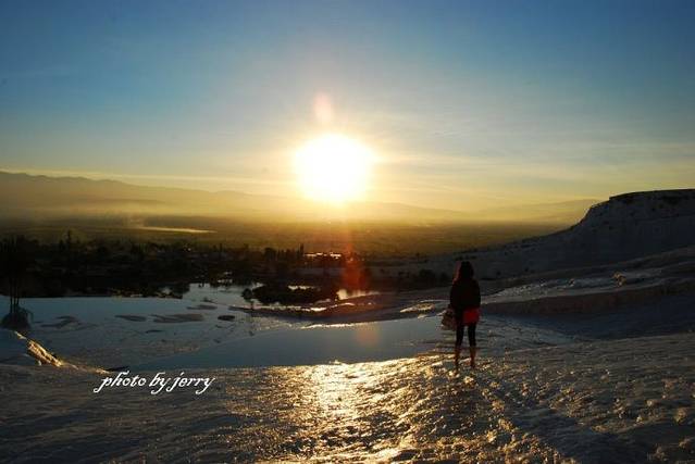 前来土耳其观光的游客,一般都会找时间去下著名的棉花堡,实际上这也是大多数国内组团游的景点之一。从土耳其西部爱琴海边的城市伊兹密尔或贝尔加马出来,向东方向直直过去约200公里,有一座繁华城镇代尼兹利(Denizli),这是去到其北面19公里处的村镇帕慕克卡莱(Pamukkale)的交通枢纽,该村镇旁边的山坡上披着一层白色的钙化岩,看上去整个山坡犹如被洁白的棉花包裹着,这便是棉花堡景区。