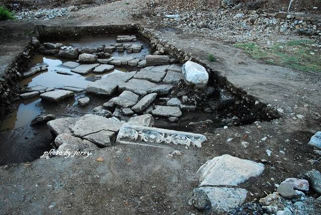 现场发掘出来许多断柱与漂亮的柱头