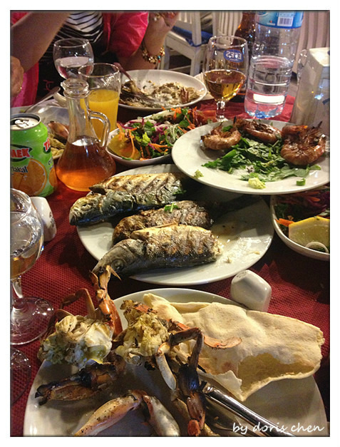 期间,商量着第二天的滑翔伞,又打电话狠狠骚扰了穆斯塔法一番,终于把第二天的所有行程搞定了,吃货们也终于可以笃笃定定喝着小酒,吃着海鲜了.