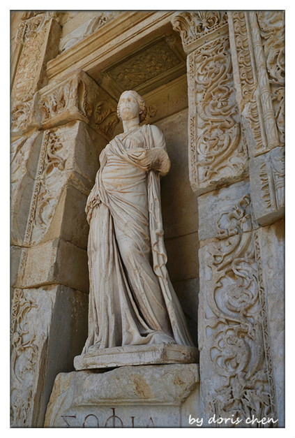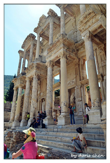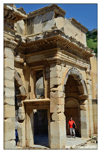 以佛所最具看点的当属塞尔瑟斯图书馆,公元2世纪,罗马一位领事官继任父亲成为以佛所城的总督,为纪念父亲在父亲的墓地上建起了这座规模号称“小亚细亚第二”的图书馆,它历经地震、大火,但图书馆的正面大门却始终屹立不倒.