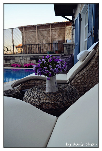 院子中的泳池环境布置得让人坐下后便再也不想动弹,吃着老板娘提供的美味蛋糕,真是惬意啊