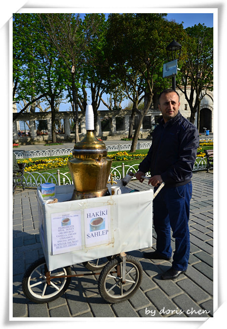 蓝色清真寺广场上的小贩,至今不晓得卖的是什么,买了一杯尝尝,不像酸奶不像牛奶,上面撒了厚厚一层肉桂粉,到底是神末??