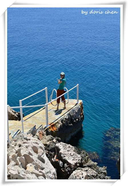 酒店有一条羊肠小道直通海边,卡斯镇没有大众喜爱的海滩,但是只要望一眼这海,便有跳下去的强烈欲望,那水又像蓝又像绿,那种颜色真的很难形容.