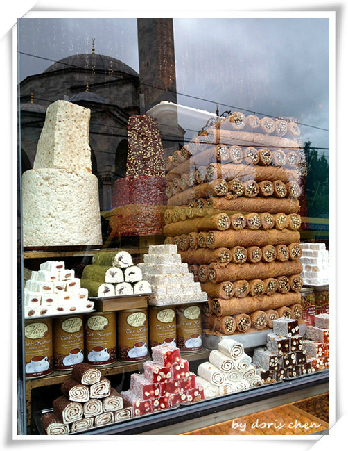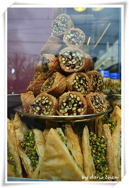 伊斯坦布尔街头一大特色,甜品店满街飞,而且陈列得特别漂亮,让人食欲大增,来个甜点集锦吧
