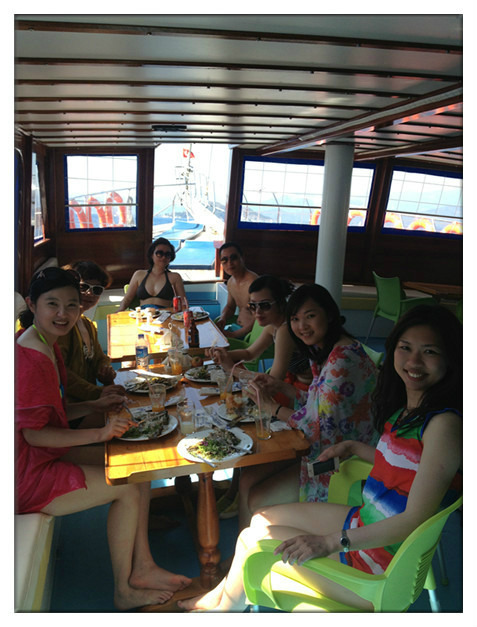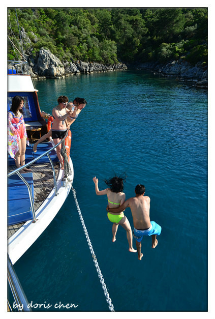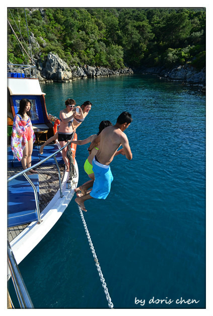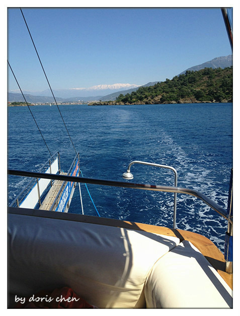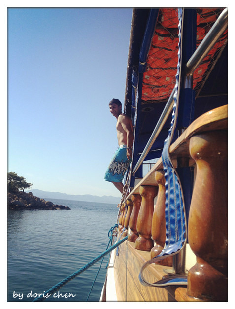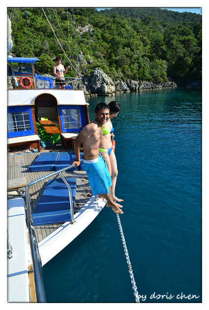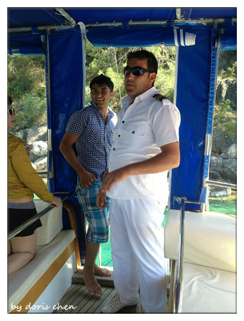 我们一行5人,再加上小妖叫来了另两个刚好也在费特希耶的女孩子,7个人平摊费用才50TL/人,比那种12跳岛TOUR还便宜,这么大的船任由我们几个兴奋地跑上跑下地参观,船老大们则在一旁笑嘻嘻地看着我们.