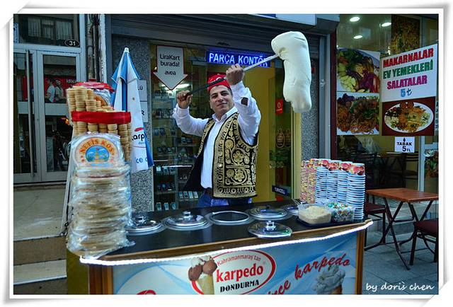 中饭吃得饱饱的,经不住冰激凌的诱惑,解馋的同时又被冰激凌老哥恶搞了一把,在土耳其,每个卖冰激凌的都能卖得这么嗨,既饱了口福又饱了眼福