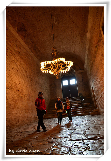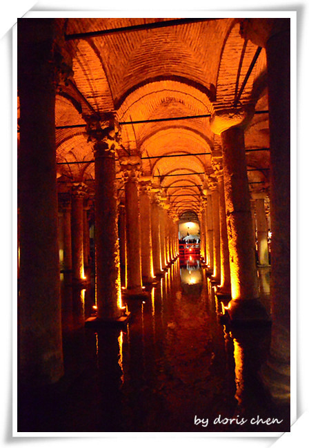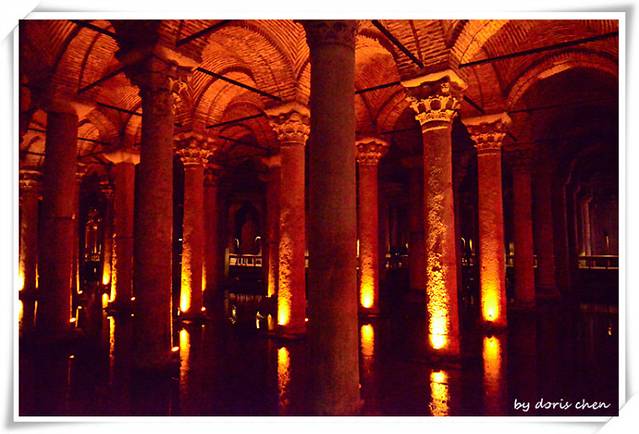 下午去地下水宫,这座宛如超级地下宫殿般的蓄水池,建于6世纪查士丁尼大帝时代,当年动用了7千名奴隶才完成,这座位于城市中心的地下城蓄水量高达10万吨,在1960年法国考古学家发现它之前,老城的居民只是经常听到水声涌动。地下宫殿的水引自20公里之外的黑海,至今宫殿内还可见鱼群出现,不得不赞叹古罗马的建筑坚固耐用.