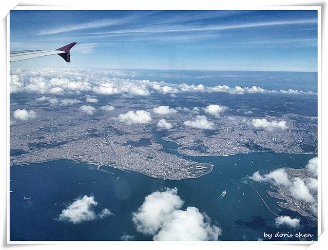 再次经过5个多小时的飞行,飞机抵达伊斯坦布尔上空,天气超好,能见度很高,能够清晰地看到亚洲区、欧洲区的老城区和新城区,还有Galata大桥,心情再一次激动起来,土耳其,我们真的来啦!