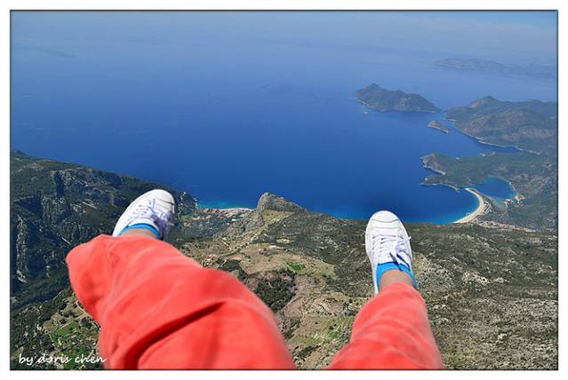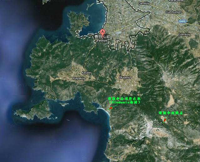2.从费特希耶到Oludeniz海滩,也就是滑翔伞公司所在地有半个小时的车程,然后上山顶起跳点还有20分钟左右车程。Oludeniz海滩上有很多滑翔伞公司,还有不少Hotel,感觉在这里住一晚也很不错。