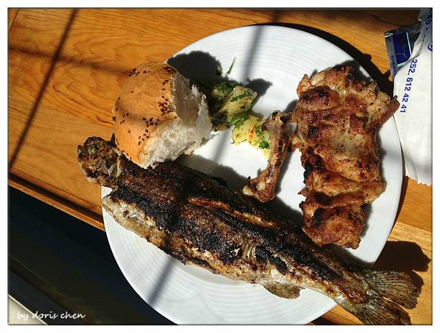 主食,烤羊腿肉配米饭,好饭店都很有个性,主食就这一种,没得选,但是真是美味啊,羊肉考得酥烂,连蒜头都又糯又入味,被我们扫荡一空,我想应该是每天的主菜都会不一样吧.