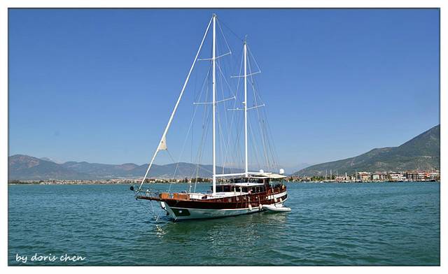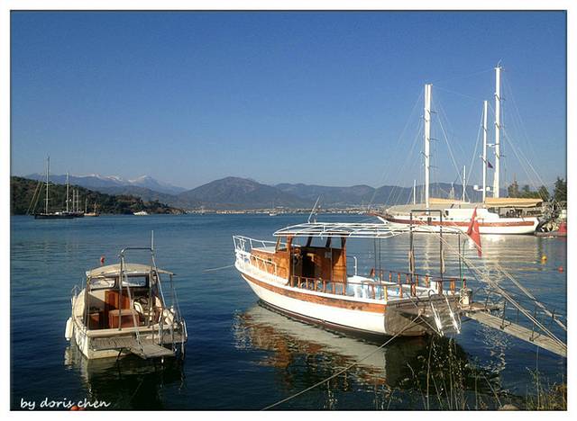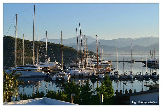 到达费特希耶已是傍晚,找酒店颇费了一番周折,看到港口停靠着的小游艇,大家便开始YY第二天出海是否也是这样小巧可爱的小游船呢?