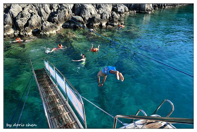 因为上午滑翔伞时间延误,导致我们下午出海时间整整晚了两个小时,等赶到码头已是下午三点,因为我们是包船啊包船,所以迟到多久都没关系,哇哈哈哈。