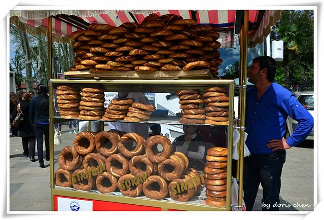 撒满芝麻的面包圈圈,很多地方都有这样的小推车