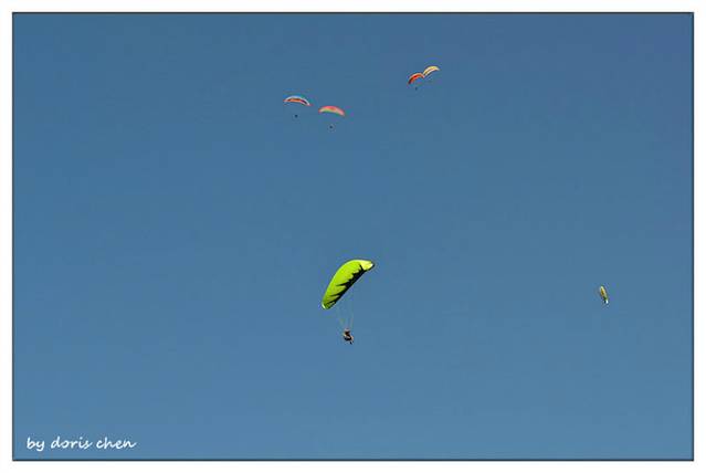 起飞的那一霎那并不可怕,只是在空中的时候,双臂真的很紧张,死死地抓住伞绳,又经不住美景的诱惑颤颤悠悠地抓着相机拍照,我容易吗?