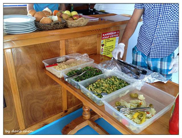 几个人七嘴八舌点完单坐下,又一次感受到土耳其人民的热情,店员大哥们热情地帮我们推荐好吃的、主动要求合影、又很热情的帮我们拿这拿那,照顾的无微不至,到处受到热情的款待感觉真好!只是心情一好菜又点多了,我们可是吃过早饭的啊!啊!啊!