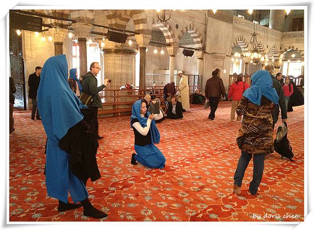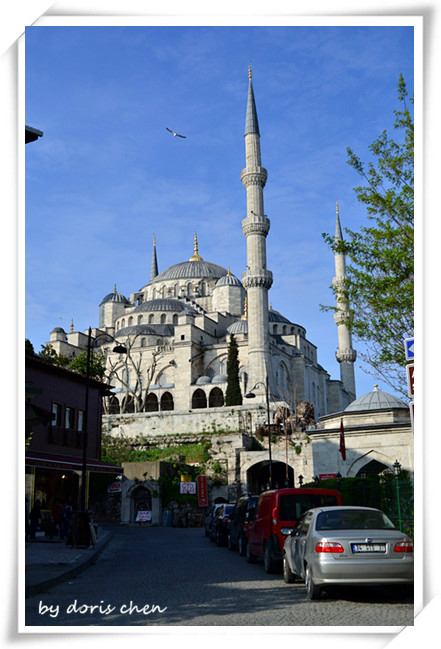路口一转,蓝色清真寺毫无征兆地出现在眼前,是那么地宏伟,那种肃然起敬的感觉是在看到它之前体会不到的