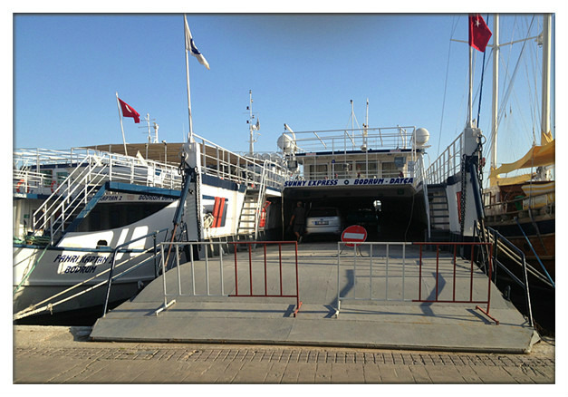 达特恰(DATCA)与博得鲁姆之间有载车渡船,如果时间宽裕、如果是从伊兹密尔逆时针过来完全可以从博得鲁姆摆渡到达特恰,再途径马尔马里斯去费特希耶,我们当时就是看GOOGLE map上有航线,但是四处打听都打听不到是否有载车摆渡,保险起见还是放弃了这条线,但是心有不甘,在博得鲁姆特地去找,果然找到了,只是貌似航班比较少,估计一天仅两班,因为码头已下班,也问不到其他信息,但是有船这是肯定的.