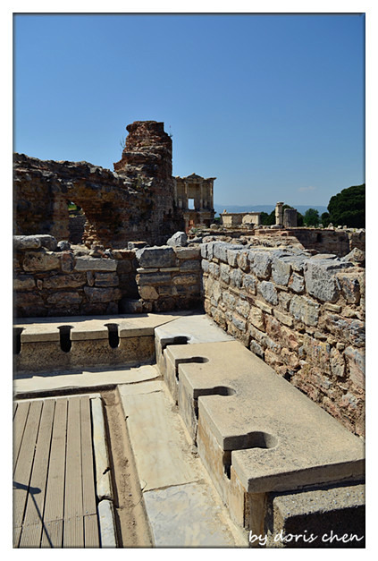 最有意思的就是这公厕了,一排整齐的石雕坐便,很有点人体美学啊,据说是古时群众的社交场所,在此大小便因为没有门,可以和邻座闲谈,更有据说,当时的冬天,因为石头的坐便冰冷,富人会出钱让穷人先坐上去捂热,哈哈哈,好有画面感