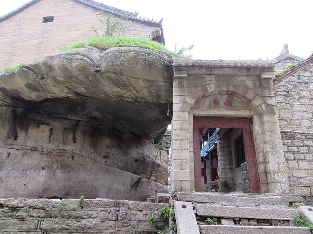 中峰顶的一块突出的岩石,上面长满了野草。石门进去就是中峰饭店。我拍照片所站的位置相对开阔,也相对避风,可以搭帐篷过夜。