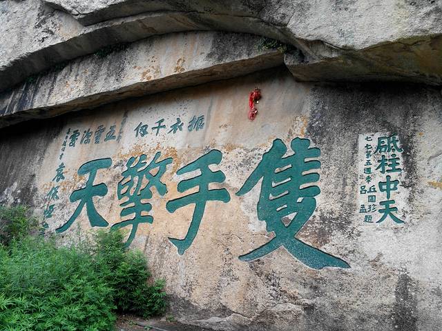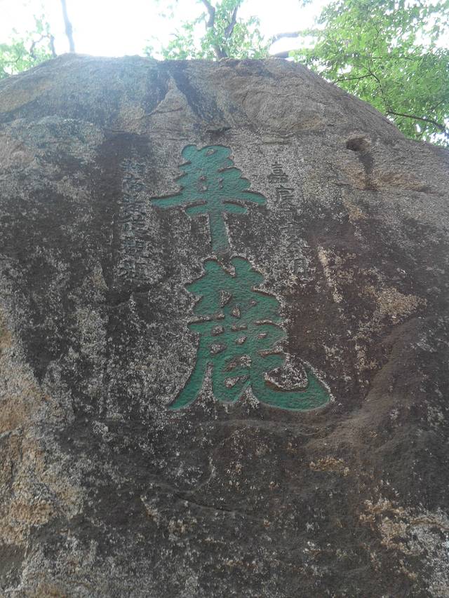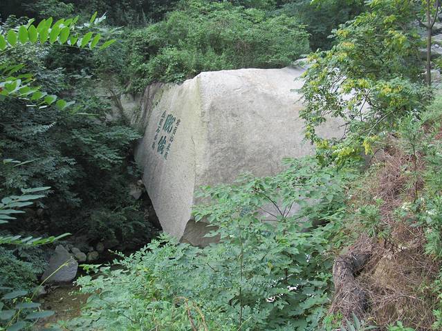 卡在山谷中间的这块巨石上刻着脱俗两个大字。