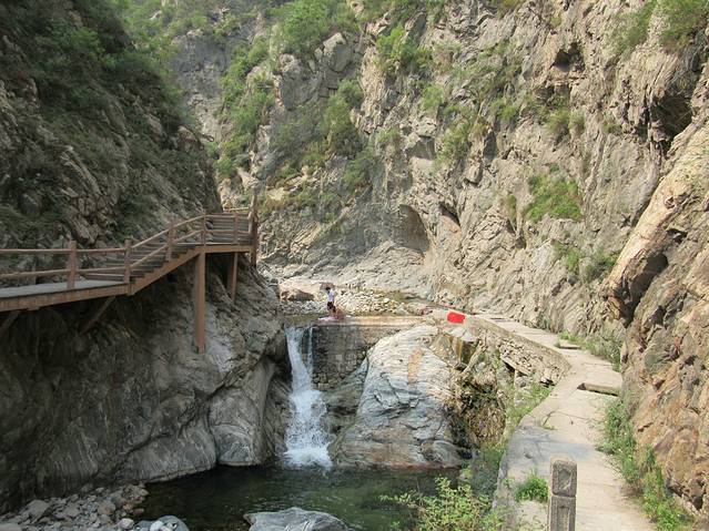 一进入仙峪就能听到潺潺的流水声。前方两个当地的妹纸在洗衣服,有点浣纱女的感觉。