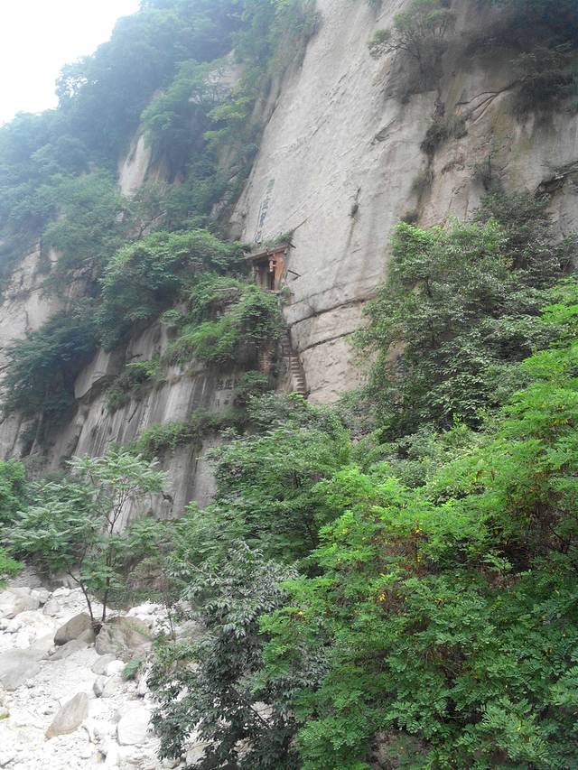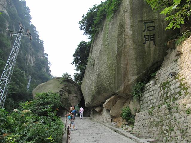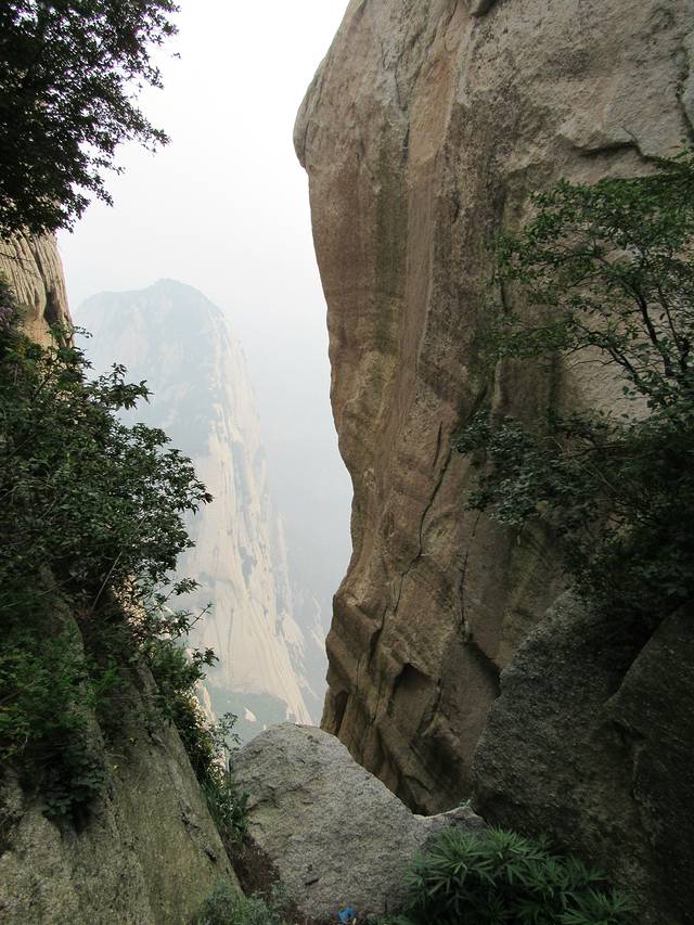 从这里我们开始正式登华山了。起初的路都是盘路,没有台阶的那种。关于登山有句俗话--紧赶不如慢爬。关键就是掌握好自己的节奏,一路看着风景不紧不慢的往上爬。路上看到那些脚步很快的。一种是登山专业户,实力真的很强。另一种就是没经验的,不知道越往后越艰难。就是这个原因很多白发苍苍的老人能够登顶,个别20岁左右的年轻人挣扎到北峰顶就坐索道撤退下山了。总之我们登山是看风景的,不是参加登山比赛的。