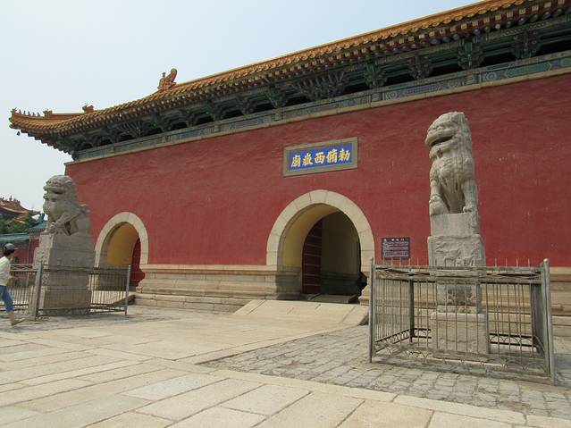 敕修西岳庙。门口一对石狮显得格外威武。
