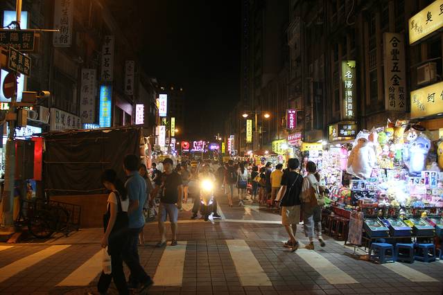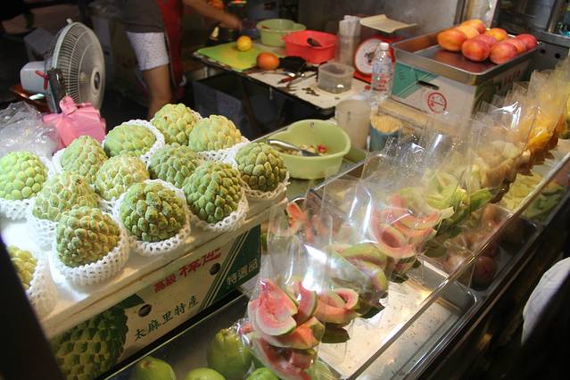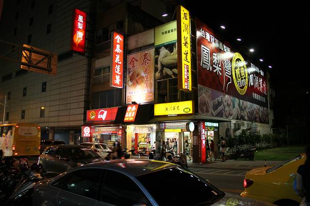 晚上赶到宁夏夜市享用美食。台湾的夜市文化很著名,每个城市都有很多个夜市,比如台北就有士林夜市、饶河夜市、师大夜市、宁夏夜市……但有的夜市由于观光游客太多,已经变了味道,我们则选择了知名度相对较低、本地人更乐于光顾的宁夏夜市。夜市以小吃著名,在这里,我们品尝了著名的赖记蚵仔煎、卤肉饭、芒果牛奶冰、酪梨牛奶、鱿鱼羹……其实,美食这种东西,任我怎么形容你也听不出味道来,唯有自己亲自动口尝尝。所以,话不多说,上图!