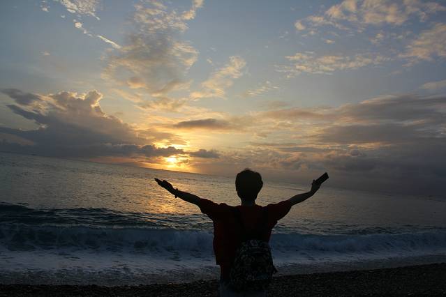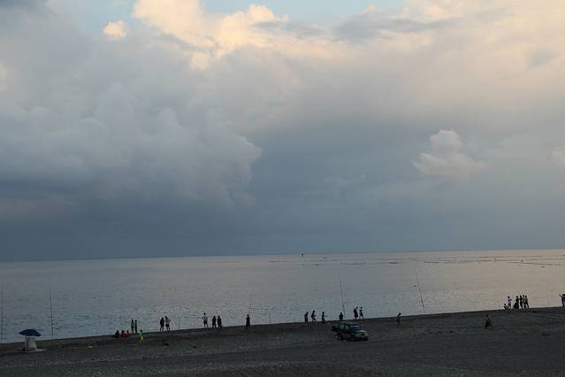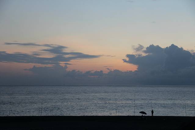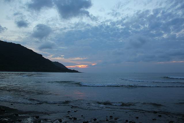 垦丁是一个三面环海的地方,很多地方都可以观赏到绝美的海上的日和日落,我们所在的佳乐水也是一个好地方,况且从民宿出来,过一条马路就是海滩,我当然不能错过这样的好机会。