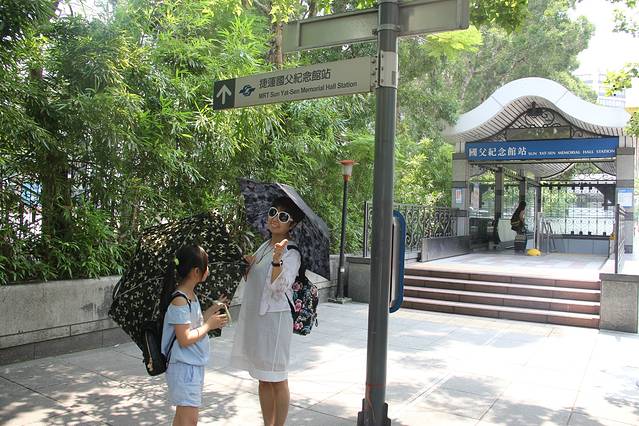 我们的正式旅程当然从台北出发。为了突出放松、休闲的主题,我们没把自己搞的太累,今天行程安排的很少,主要在台北西区游览,目标是国父纪念馆、中正纪念堂、淡水老街、渔人码头,晚上去宁夏夜市享用美食。结果出门晚了点儿,那就砍掉“中正纪念堂”吧,谁叫我对那个谁谁谁不感冒呢!