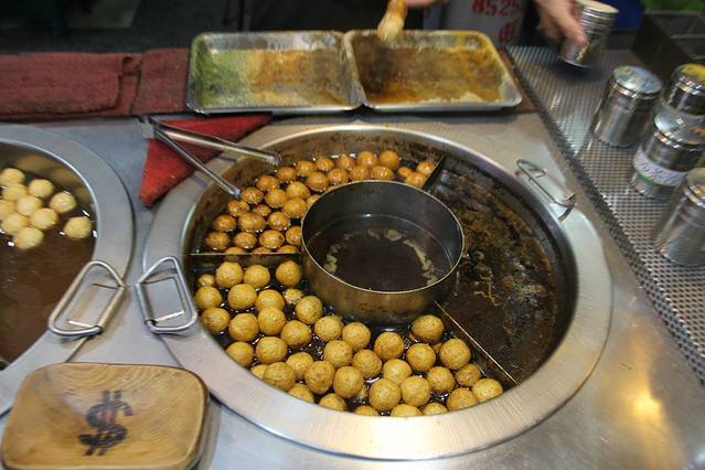 我们先后享用了柠檬爱玉冰、鸡翅包饭、麻糬、鱼丸、芝士焗马铃薯、卤肉饭、鱿鱼羹……总之,很爽!