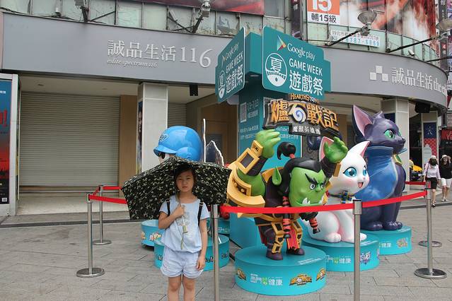 很快抵达之前预定好的位于“西门町”的爱悦酒店,办理入住时被告知儿童需要加收800台币的人头费,这点有点不太人性化。西门町是一个十分嘈杂的商业街,各种小吃和摊贩云集,仿佛郑州的光彩市场,到处是新人类,到处是帅哥美女,但整体感觉秩序混乱。我们随便转了转,吃了点炙烤牛排、著名的豪大大鸡排、正宗台湾烤肠,寻找阿宗面线时出了点问题,按照手机上的百度地图怎么也找不到,最后无奈放弃回到了酒店。酒店房间还不错,面积不大,但干净整洁,洗浴用品不错,是欧舒丹的,自动冲洗马桶坐垫,人民币500多块一晚,在寸土寸金的台北,也算对得起这个价格了。