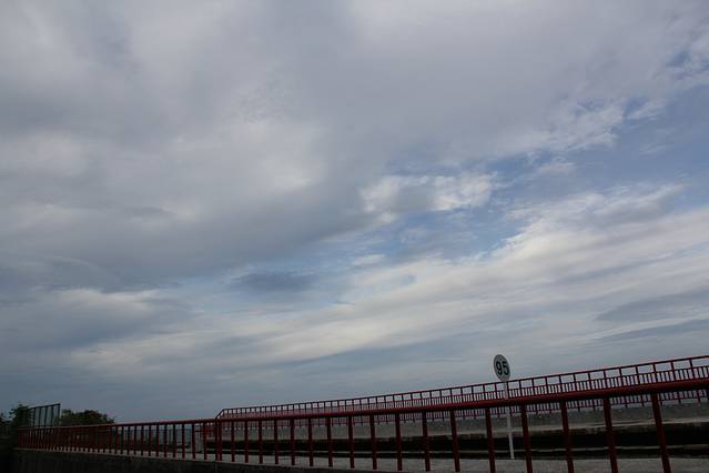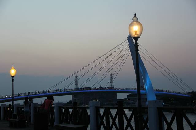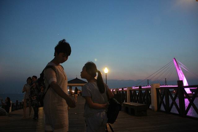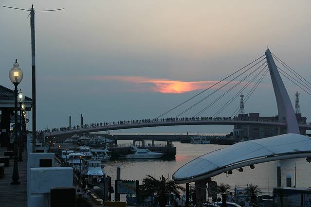 淡水渔人码头的日落据说是台湾八景之一,我当然不能错过!只是天公不作美,云层遮住了夕阳,不过看着红彤彤的晚霞、颜色变幻莫测的情人桥,加上阵阵凉爽的海风,还是挺惬意的!