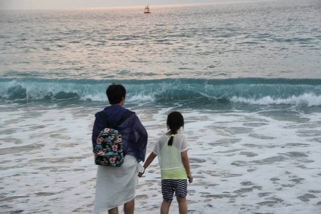 为了满足女儿玩水的愿望,今天我们的主要行程计划是到南湾潜水。考虑到孩子的承受能力,我们没有选择下潜到海中几米或是几十米深的“水肺潜水”,而是那种依靠简单面罩和呼吸管的体验式浮潜,就是这种技术含量相对较低的浮潜,也已经让孩子玩的不亦乐乎了!当然,到了南湾,后壁湖的海鲜是一定不能错过了,尤其是大名鼎鼎的“辉哥生鱼片”!