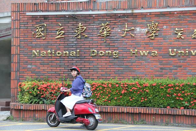也许正是暑假期间,校园里人很少,我们骑着电动车在校园中漫步,感觉宁静而悠然。