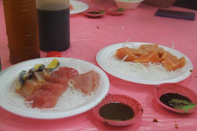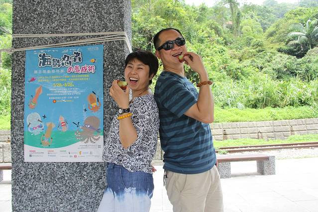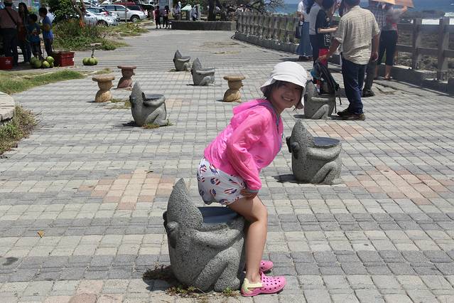在谷歌地图的指引下,下午一点多钟,我们来到了后壁湖海鲜市场。来这里的目的只有一个,那就是“吃”。后壁湖海鲜市场和大陆内地很多海滨城市的海鲜市场很像,都是一个个的商铺,门前摆放了各类鲜活海鲜叫卖,旁边摆放着几张简陋的桌椅,喜欢吃什么现点现做。“辉哥”生鱼片就在门口的第一家,也是最有名的一家,当然队伍也排的最长。我们不愿等待,只好退而求其次,选择了另外一家,但生鱼片的品质和价格应该都差不多。生鱼片价格不贵,大份的综合装150台币,有三种不同的生鱼片,吃法都是一样的,沾芥末汁生吃,但这里的生鱼片切得很厚(或者说“鱼块”更合适),分量很足,吃的很过瘾。之后我们又随便点了几样海鲜,吃的很撑。最后结账共1300余台币,略感不值,也许这就是所有海鲜市场的通病。