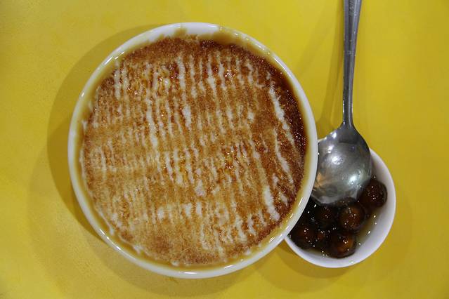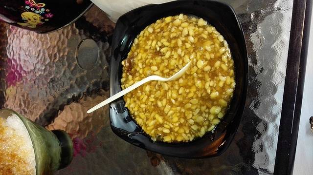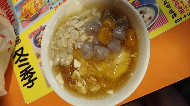 其中,记忆最为深刻的当属“绿豆蒜”了。“绿豆蒜”是一款遵循古法手工制作,香甜浓郁的甜品,它的主料是脱壳后的绿豆仁,外型就像菜刀拍碎的蒜末,撒上碎冰后汤汁呈现出的深邃琥珀色,再加入透明的粉圆,淋上手工熬制的焦糖,简直就是视觉与味蕾的美妙结合,口感糯糯的、滑滑的,每吃一口都是惊喜!如此色香味俱佳的美食,仅需35台币一份,真的是良心价啊!