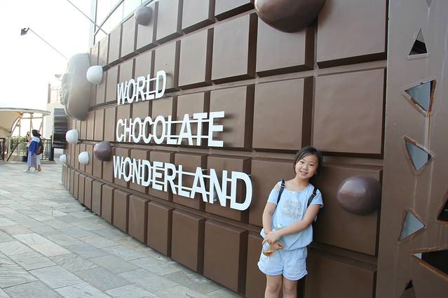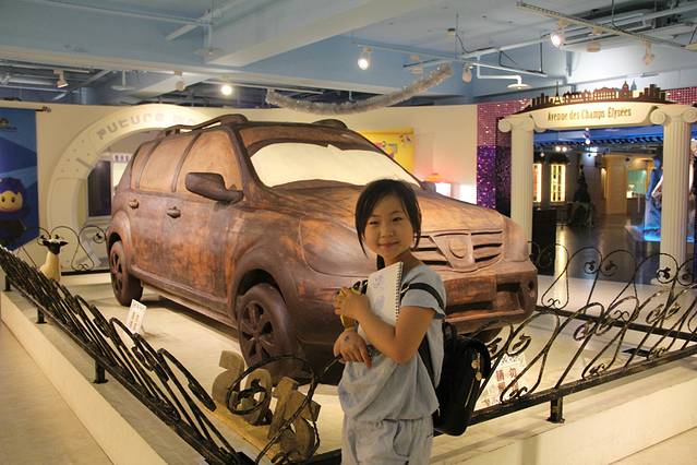 红毛城距离渔人码头还有相当的距离,腿过去显然是不太现实了,我们上了公交车,15分钟后抵达渔人码头。天色尚早,距日落看来还有一段时间,正好旁边有个巧克力梦公园,票价不菲,300多台币一个人,看着女儿期待和渴望的眼神,我毫不犹豫的买了票!里面是个巧克力的世界,孩子玩的不亦乐乎,还趁我不备偷偷用舌头舔了舔陈列的展品,惊喜的告诉我说“真是巧克力做的!”