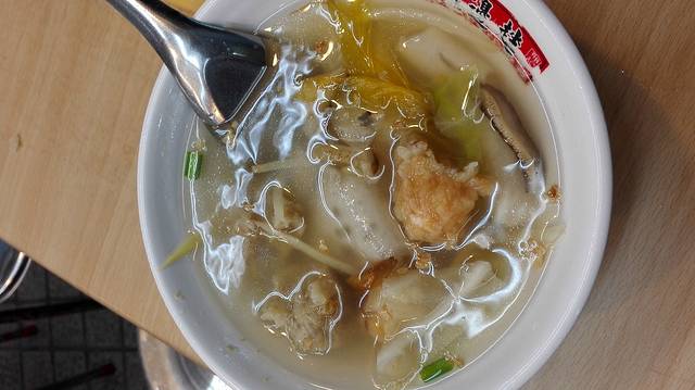 品尝阿宗面线时只能站着享用,店内根本就没有地方。说是面线,其实感觉更像面糊,面条口感绵软,少了几分筋道,汤汁浓厚,味道偏甜,里面的配料有大肠、海蛎等。正所谓萝卜青菜各有所爱,有的人特别钟情这一口,但对于我这个习惯了北方餐食的家伙而言,就算是一种尝试吧。