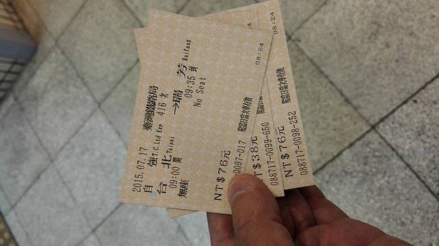 火车:出发前,请预定的垦丁民宿的张姐帮忙预定了台湾省境内的两趟火车票。一是瑞芳至花莲的台铁票(听说较为难买);二是高雄至台北的高铁票(提前买有折扣)。我们一家三口,两趟火车分别花费173元和719元(均为人民币)。顺便介绍一下台湾的铁路系统:台湾铁路分为高铁和台铁,高铁只在西海岸台北至高雄一线有(票价昂贵,提早购买有优惠,称之为早鸟票”,有9.5折的、有8折的、最高有6.5折的,每趟车的早鸟票都很有限,能否买到一靠人品,二靠提早。我买到的高雄至台北的8折早鸟票,成人1300台币,折合人民币约260元);台铁则台湾环岛皆有,票价亲民(台铁又分为自强号、营光号和复兴号,相当于祖国内地的特快、快和普快,票价略有差异)。