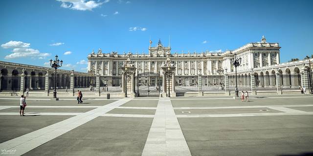 马德里王宫曾在1734年的圣诞节被烧毁,1764年10月意大利的建筑家谢瓦拉和萨凯提、萨巴蒂尼等重新修建完成了现在的这座王宫。阿尔梅利亚广场和巴尔克尼是法国风格,而建筑内部则是当时流行的意大利风格。150米见方的建筑物内部,有2700间房屋,至今仍作为国事活动的一个场所在被使用着。