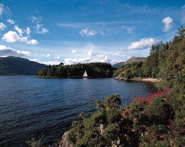 在热闹的格拉斯哥不远处坐落着托撒契国家公园(Trossachs National Park),罗蒙湖(Loch Lomond)就位于公园内。 北边的山脉依稀可见,而湖泊南端散落着许多小岛。诸如鲁斯(Lu ss)等美丽村落分布在湖的西畔,所有这些景象成就了苏格兰脍炙人口的民歌《The Bonnie Banks O’ Loch Lomond》。苏格兰作家兼诗人沃尔特•斯科特爵士(Sir Walter Scott)也深深地爱着这片区域,他写下著名诗篇《湖上夫人》(The Lady of the Lake)的灵感就来自于国家公园内的卡特琳湖(Loch Katrine),如今湖上还有一艘名为SS斯科特爵士号的蒸汽船供游客游湖。