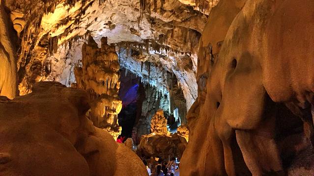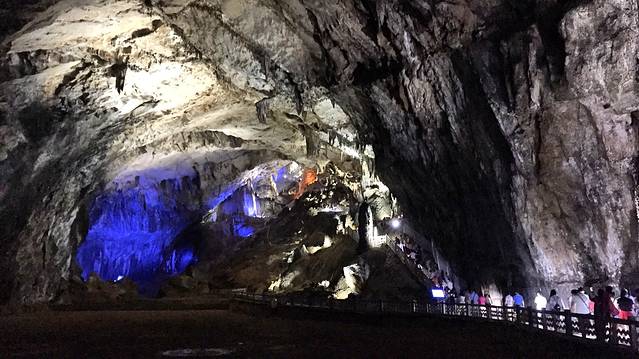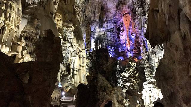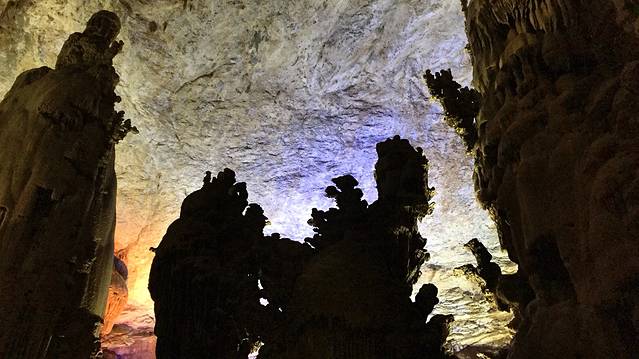 织金是计划外的一站,因为预科的同学住在这里,所以特地过来玩耍,不然就错过了“织金洞”这个值得五星推荐的好地方!一到洞口就感觉从夏天到了冬天,越往洞里走越冷,手碰到旁边的岩石都感觉很冰凉。织金洞内面积很大,要逛差不多两个小时,洞内还有四百多级台阶,且道路湿滑。里面的石柱石笋造型独特,都存在了上万年,大自然的鬼斧神工令人叹为观止。