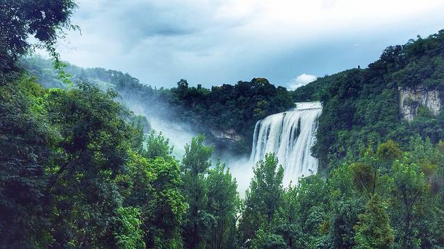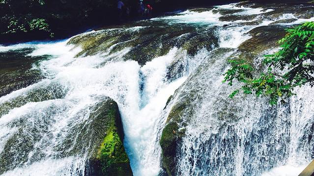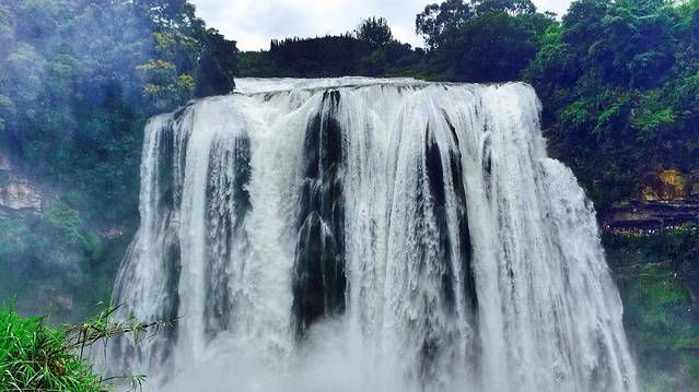 游过天星桥之后就来到整个景区的重头戏——黄果树大瀑布。走过盆景园后,就看到黄果树大扶梯,因为我们想边爬山边看美景,所以就没有乘坐大扶梯。一路爬山从下往上可以看到不同角度的大瀑布,离瀑布越近越能感受到它飞溅而起的水珠。在爬到高处走过水帘洞从里面穿过大瀑布的时候,身上的衣服都被淋湿了,但是在走过水帘洞之后就没有了类似雨滴的感觉。总之,相当壮观很值得一看。