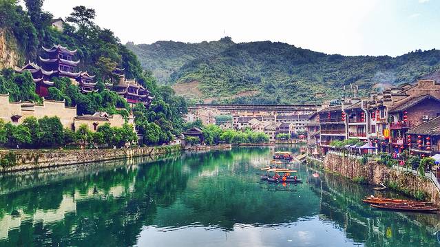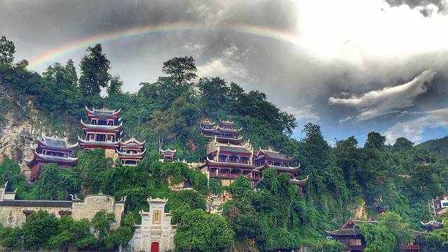 镇远古镇不大但是沿江两边的建筑特别有特色,国内古镇纷纷圈地收费,镇远是为数不多的免费景点。雨后初晴的天空下,幸运的看到了最美的彩虹,不虚此行!