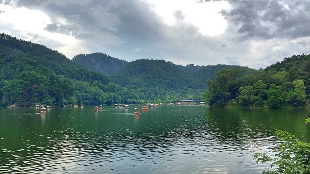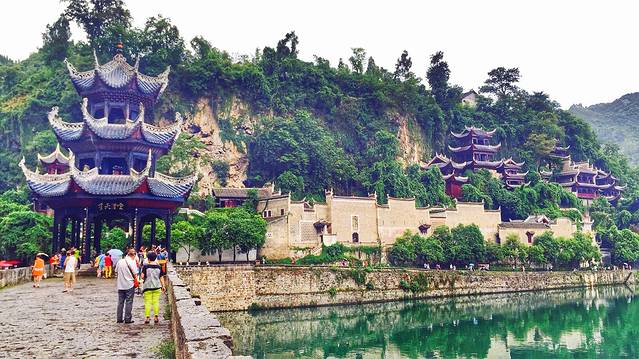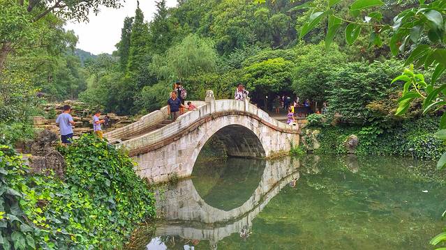 黔灵山公园 地处市中心地区,交通特别方便。黔灵山有“黔南第一山”之称,山上有猕猴,给整个山增添了一股灵气。公园内沿着小河往前走,可以看到一个石拱桥,小桥流水青山,空气特别清新。爬山上去弘福寺,下来之后沿河走过一段路,会看到“三岭湾步行隧道”,刚刚爬过山下来满头大汗,一进到隧道,就像走进空调房,凉快极了。穿过长长的隧道,眼前一湖碧水让人豁然开朗。逛完一圈之后我们就准备离园。刚进公园的时候天空还是蓝天白云,等到一出公园大门,天上就乌云密布下起了倾盆大雨。
