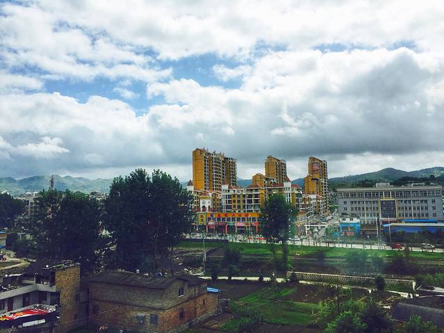 坐在火车上看到的沿途的贵阳市景,天空非常蓝!