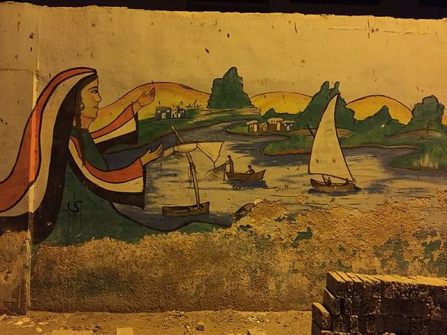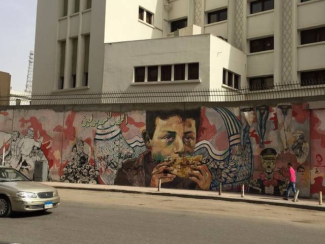夜色:开罗一处发现的涂鸦墙,埃及的国旗是红白色三条,加中间一个老鹰